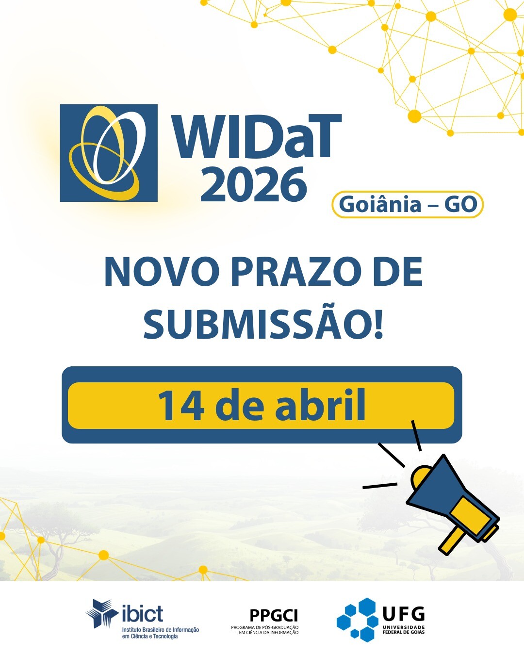 O IX Workshop de Informação, Dados e Tecnologia (WIDaT 2026) teve o prazo de submissão prorrogado até 14 de abril. A decisão atende a pedidos da comunidade e amplia o tempo para finalização dos trabalhos.